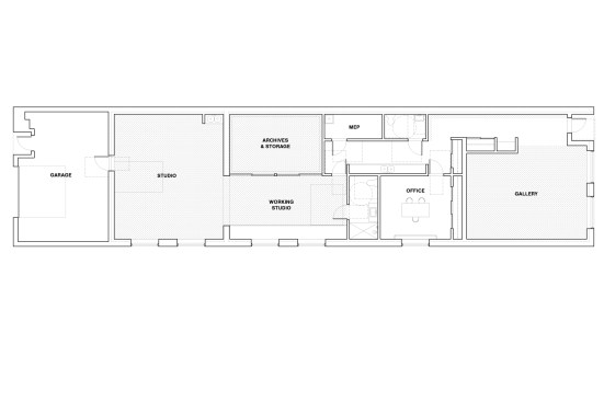 We just completed Studio 5524, a gallery, studio, and office for a Chicago painter. The project transformed an early 1900s building into a space for both creative work and semi-public gatherings. We loved the chance to design both through subtraction—the building had been built up with odd partitions and finishes over time—and preservation—retaining a few key historic elements that gave the minimalist space a unique character.