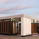 The integrated structure features a thin film photovoltaic roof, façade and louvered panel system, heat-recovery climate control and ventilation systems, plus Passive-House-standard triple-pane windows. Solar-powered LED lighting systems and vacuum insulated panel systems also are signature to the pavilion.
