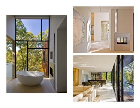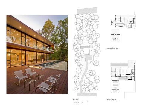 Jury comments: It is an elegant modern home that creates a place in the woods. It is comfortable with its skin with and elegant in its proportions and composition. Light and space flows through the plan. The relationship between the inside and outside of the wooded site is explored to great advantage.