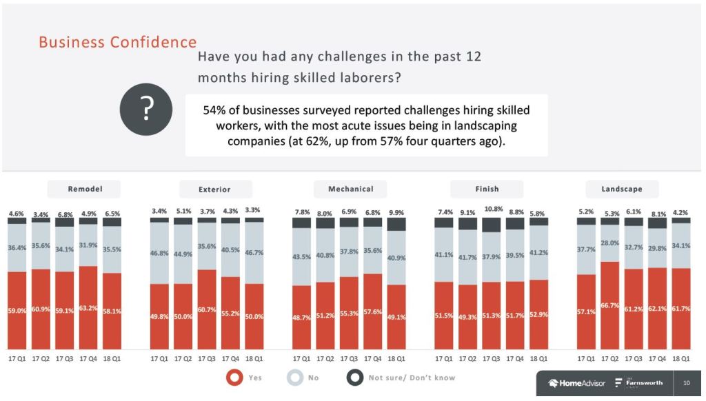 HomeAdvisor surveyed 1,225 firms from Feb. 15–28, and asked questions about business leads, volume and quality of backlog, labor availability, and government regulations.