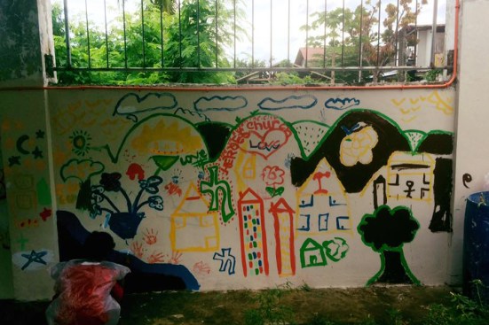 During construction, to celebrate the completion of the school walls, we decided to hold a special movie night for the students. The kids got to the site early and, while waiting, swept the ground clean, created a theater by outlining a space on the floor with rocks, and hung up a white sheet as a screen. It was touching to see what they had created from nothing and how much they cared.