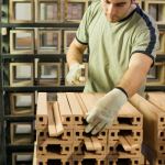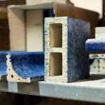 Prior to firing, which the factory typically limits to a once per piece, the formed clay awaits in a heated dryer to decrease its moisture content. These pieces are designed for a perforated screen wall for a private residence.