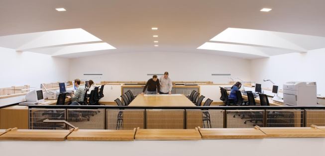 Client: “It has fulfilled all our hopes and more. It offers all the basic elements: teaching space, offices, a library, work space—but all are integrated in a way that keeps people moving and talking. The design is beautiful and quirky. People can inhabit it in many ways: for lectures, for silent study, for small group discussions, for parties, for snoozing. But what really makes it is the light.” —Susan Alcock, director, Joukowsky Institute for Archaeology and the Ancient World