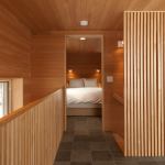 Salmela often employs wood screens to let light into a space while providing visual separation—as at the Rierson Cabin in Tofte, Minn.