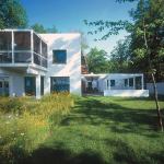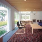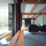 The interiors of the Hall House use glass and white paint to create layers of sightlines, views, and natural light.