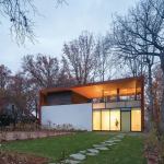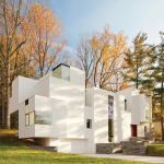 Not only was Jameson not imitating anyone else, he wasn’t even repeating himself. And he still doesn’t. “There’s not a lot of repetition,” Fitch says. “He’s always trying something new.” Jigsaw Residence, a Bethesda, Md., house that won a national AIA Honor Award in 2009, uses interlocking, white-stucco-coated geometric forms to create privacy on a tight suburban lot. On the Eastern Shore, the House on Hooper’s Island is divided into several small, shed-roofed buildings, clad in horizontal standing-seam metal and resting atop concrete plinths. And Barcode House, an urban addition in Washington, features glass walls held in place with exposed, horizontal steel rods that match up with the datum lines of the surrounding row houses.