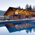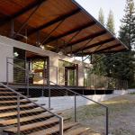 Located in the hills above California’s Sonoma Valley, Sonoma Mountain House occupies a high, sloping site shaded by towering trees. “You climb a long, winding drive to get to the site,” says architect Richard Schuh, “then you’re surrounded by these classic California trees: firs, redwoods, oaks, and madrones.” Schuh insisted on saving as much of that standing timber—and of the site’s existing topography—as possible in this project, designing the house as a largely transparent platform for living, entertaining, and, most important, simply being here.