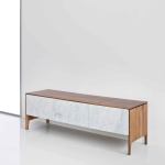 Italian designer Luca Martorano used receding edges and rounded corners to shape thin layers of marble into functional surfaces whose weightless geometries give bathroom and living spaces a visual lift. Designed for Neutra, the NEOS collection’s minimalist structure combines stone surfaces, wood frames, and stone-faced drawers into bathroom and interior furniture with a lightweight look sharpened by the refined, technical appeal of its detailing. Neutra, 39.0362.246708; www.neutradesign.it.
