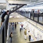 This could have led to disjointed results, but Predock has crafted an open, unified space, with studios and critique space organized around a three-story well. Balconies, stairs, and a bridge encourage what Predock calls “visual eavesdropping,” fostering social interaction and an environment in which students can learn from instructors and each other.