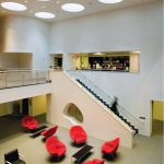 What Gwathmey does get right is that he separates the old building and the addition by a public space that acts as a skylit courtyard between the two. The courtyard, which serves as a lounge and reading room for the expanded library, binds the old building to the addition by a void.