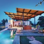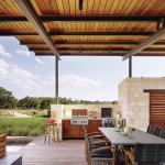 Situated on a plateau a full mile from the main house, Lake|Flato’s 2,375-square-foot pool house has nearly wraparound views of Texas Hill Country. The clients, who own a large ranch where the firm has designed multiple buildings over the years, asked for a contemporary outdoor room like the open-air pavilions in Thailand, where the husband frequently travels for work.
