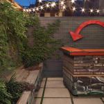 The Urban Garden transforms a home's lackluster backyard into a landscaped patio complete with a red, reclaimed-metal bartop by Gatski Metal.