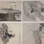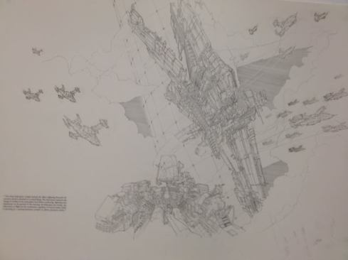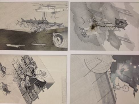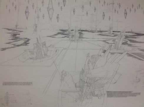 I had the pleasure of attending final reviews at both the Bartlett and Greenwich this December. At the Bartlett, Allan Smout directed a group of students who visited Florida and looked at how the human-made landscape could be responsive to ever more violent natural conditions. I thought the standout was the project by Farah Aliza Badaruddin, a young woman who fills her sketchbooks with visions of architecture that look to Star Wars and Star Trek more than Wren and Vanbrugh for its inspiration. She proposed harvesting lightning at the old Cape Canaveral site to increase the soil’s fertility, and showed visions of tethered balloons, helicopters servicing the fields, and a field of fragments coalescing into agricultural structures. Her drawings had the intensity and near insanity that draws us into the warped world of science fiction and comics.