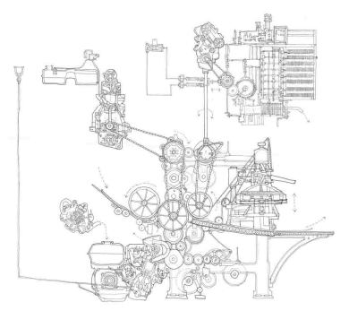 At Greenwich, Laurence York, under the direction of Simon Herron, displayed a similar hand, imagining fragments of London becoming cancerous with mechanical equipment spilling out from its hiding places to compete with the city’s columns, pediments, and traffic. The drawings had a messy logic to them that made you almost believe his crazy ideas. His thesis proposal was for a new bank for the Commonwealth countries, which would evidence itself as an enclosed garden on the site of the National Gallery’s ill-conceived Venturi Scott Brown and Associates–designed addition. The bankers were to regain sanity there, while the actual work took place underground, unless there was a dispute between countries, in which case a tower would push up through the garden, enclosing the disputants until they came to agreement.