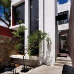 On a 20-foot-by-220-foot lot, four CASA buildings are linked by gardens, courtyards, and fountains.