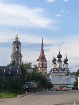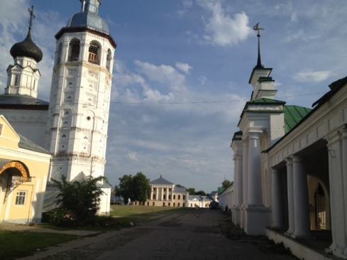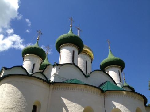 Suzdal is certainly old. The first mentions of it go back to the 11th century. At one time, the town of now barely 10,000 had considerable power, but over the centuries it has faded into a village. What sets it apart from other Russian villages are the hundreds of churches and monasteries; the combination of a long history, former glory, and its location in Russia’s heartland. The monasteries are walled compounds, while the churches exhibit a combination of architectural elements that run the gamut from Eastern orthodox onion domes to a severe neo-classicism.