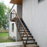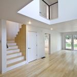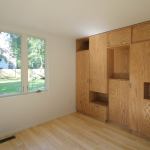 Priced at $55 per square foot (not including free construction labor from the students and more than $100,000 in donations), the home is energy efficient thanks to foam insulation low E windows, and a precast insulated foundation, but it’s also stylish, clever, and adaptable for large families. The wall separating the owner and tenant unit on the second floor near the stair landing can be removed to create a contiguous single-family house, Crosby explains.