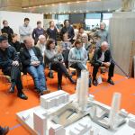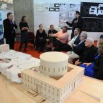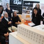 Yale Davenport Visiting Professor Frank Gehry, Stanely Tigerman, Eeva Liisa Pelkonen and Patrick Bellew, with student