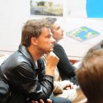 Paola Antonelli, Joel Sanders, Mark Foster Gage, Stanely Tigerman, Frank Gehry, Maia Small, with student for Greg Lynn Final Review.