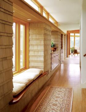 The house's volumes, topped with yellow cedar hipped roofs, sepa… The house's volumes, topped with yellow cedar hipped roofs, separate the private, semi-private, and public functions and enhance the sense of light and scale. Top-hinged awning and sliding teak windows control air flow.