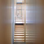The ebony horizontal slats at the top of the stairs echo the ebo…