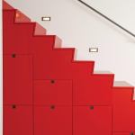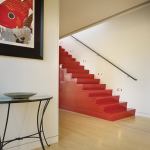 While the stair’s form derives from a Japanese archetype, its red lacquer finish speaks of China.