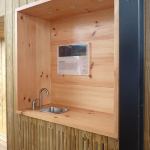 Galvalume-clad kitchen cabinets mimic exterior siding and extend…