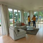 A fully retractable glazing system opens interior spaces to the outdoors for maximum cooling effects or encloses the house with insulated glass to provide relief from summer’s heat and humidity.