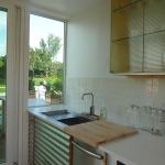 When the window is lowered it acts as a railing and opens the space to pleasant breezes. In the winter it’s warmed by the sun and helps passively heat the space.