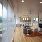 An interior window also fully retracts into the living room wall to give the interior a physical as well as visual connection to the outside.
