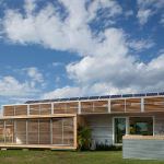 The home’s solid southern elevation is punctuated by one set of sliding doors to promote cross-ventilation during cooler months.