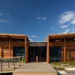 The continual glazing on the north-facing glass wall allows natural light to permeate all of the interior public spaces even when the argon-filled sliding doors are closed and further screened with interior shades during times of extreme temperatures.