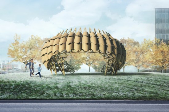 Common Matter, our timber structure proposal that emerges from an in situ human-robot collaboration for the 2019 Tallinn Architecture Biennale pavilion in Estonia. Our material system questions the basic typologies of wood construction—surface versus frame tectonics—by creating a skin that acts as façade and structure. A human-robot collaborative process is employed to take advantage of the precision and speed of machining complex joinery, while human cognition and intuition is used to assemble and manipulate the trusses and bent panels.