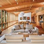 Douglas fir ceilings and cabinetry, along with ipe floors, lend …