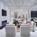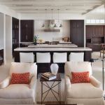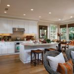 An office and conference room with a separate entrance out front make it easy to run a business from home. And an elevator, a second master bedroom downstairs, and an accessible entrance through the garage, will allow aging in place. Though measuring 5,394 square feet, the French West Indies–inspired exterior looks more comfortable than grand from the street. The interiors are contemporary, in whites and neutrals, creating a quiet backdrop for the view.