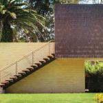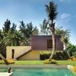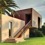 The copper-sided cube cottage on a Florida estate needed to be built high to avoid storm tides. TOTeMS Architecture managed to do that and maintain the ocean views from the main house by raising the module up onto nearly invisible supports, making the 302-square-foot building appear as though its stairs climb to a house hanging in the air.