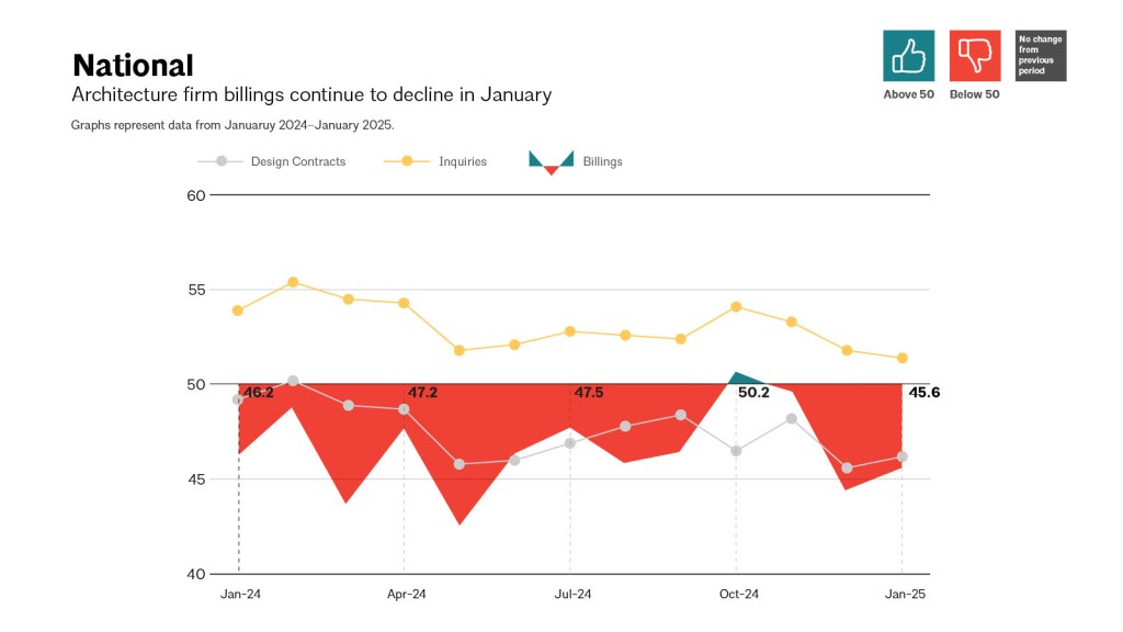 As the architecture industry navigates the complex economic landscape of 2025, the latest data from the American Institute of Architects (AIA) reveals a persistent decline in firm billings, indicating a cautious outlook among owners and developers. The AIA/Deltek Architecture Billings Index (ABI) for January stood at 45.6, suggesting a contraction in business conditions for architecture firms nationwide.