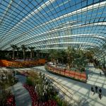 Wilkinson Eyre Architects has completed the Bay South Garden in Marina Bay, Singapore. The Bay South Garden is the first of the three parts of the government of Singapore’s Gardens by the Bay project, for which Wilkinson Eyre collaborated with Grant Associates to provide the winning entry in a 2006 competition for this parcel. The Bay South Garden features two steel-and-glass conservatories with distinct climates engineered by Atelier Ten: the Flower Dome—1.28 hectares (3.16 acres) of cool/dry climate—and the Cloud Forest—0.73 hectares (1.80 acres) of cool/moist climate. These conservatories vaunt sustainable attributes such as carbon-neutral cooling and a computer-controlled shading system. The façades use low-E glazing to maximize light transmission and minimize solar heat gain, with the fabric shading system controlling light levels on sunny days. Also providing energy for the site are a grove of Grant Associate–designed ‘‘Supertrees’’ that shade the site, exhaust heat from the conservatory buildings, and collect solar energy in their photovoltaic canopies.