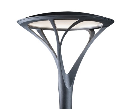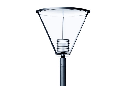 This site luminaire joins Milan-based designer Francisco Gomez Paz’s line of site elements for the company and comes in 12′, 14′, and 16′ heights with a top-mounted, cast-aluminum head on a tapered pole. In Type III and Type V distribution with 30 LEDs each, it is available in 3000K, 3500K, and 4000K with a 100V/277V AC input. It is zero-to-10V dimmable and IP66 rated with a diffuse lens that manages glare and asymmetric optics to direct light. landscapeforms.com