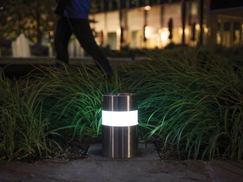 This 14W LED bollard joins the company’s Light Column family with its minimalist form and stainless steel construction. It is available in 3000K and 4000K and uses a 100V/277V input. The LED driver is zero-to-10V dimmable. The bollard is 9.75″ tall and comes in 5″ and 6″ diameters with a white-frosted acrylic lens and a stainless steel head-cap. Satin or powdercoat finishes are offered. forms-surfaces.com