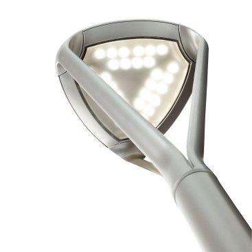 The company has added LEDs to this indirect LED area luminaire, designed by French architect Jean-Michel Wilmotte. It is available in 3000K and 4000K, delivering 2,201 lumens and 2,305 lumens, respectively. A single chip-on-board LED is positioned within a polycarbonate reflector to produce a 40-degree beam spread. In matte silver-gray metallic or graphite gray finishes and with a stepped steel or aluminum pole in nominal heights of 13′. hessamerica.com