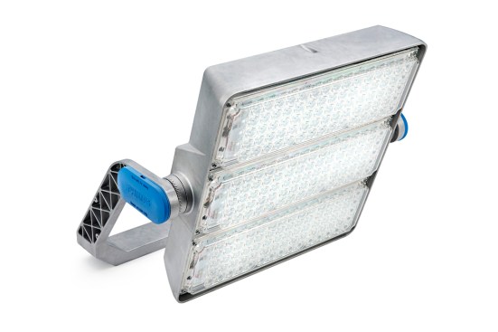 The first LED luminaire designed to retrofit into existing outdoor sports lighting infrastructure, according to the manufacturer, this high-powered luminaire is available in two models, a 550W version and 750W version with lumen outputs of 61,000 and 83,000, respectively.IP66-rated and NEMA 4X rated, it is offered with wired and wireless controls with Bluetooth monitoring. It runs on an input voltage of 240V AC to 480V AC. The 45-pound fixture measures 15″ tall by 15.4″ wide and has a versatile mounting bracket for new or retrofit installations. eaton.com