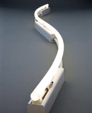 The CLS-Slim measures 1 5/8 inches wide by 2 3/8 inches tall, achieving the smallest cold-cathode luminaire on the market today, according to the manufacturer. Two models are available, the Straight (CLS-Slim) and the Flexible (FCLS-Slim, shown). The fixture can cover up to 7 1/2 feet in length and uses ultralong-life, high-output, high-color-rendering T6 cold cathode lamps in 12 different white hues. The lamps snap in and out of the lampholders. Each luminaire is equipped with 1 percent integral diming ballast and is compatible with two-wire low-voltage dimmers. cathodelightingsystems.com |