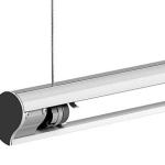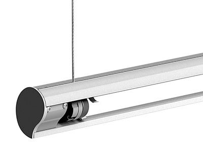 The slim LED wallwash luminaire by Finelite uses an LED T8 module with an internal driver and a gloss-white internal reflector. There are three shape options (oval, circle, or square), three color temperature options (3000K, 3500K, and 4100K), and three length options (2, 4, and 8 feet). The oval model (shown), measures 1.5 inches wide by 2.25 inches tall. All models come with points along the entire length of the luminaire for adjustable mounting options for both pendant and wall installations. www.finelite.com |