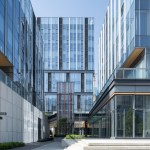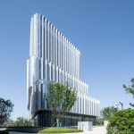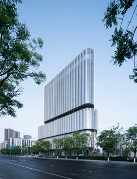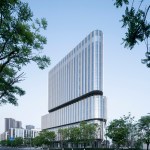 The façade design borrows vertical textures and weaving patterns from the local Chengdu Embroidery to form a unified identity. A neutral yet vibrant colour palette was selected, encapsulating the dazzling modernity and infinite energy of the development. A high performance curtain wall system with low-E coated glazing units features a series of vertical fins to achieve passive shading and minimise glare.
