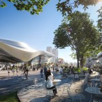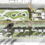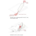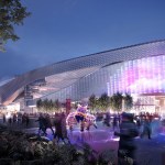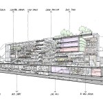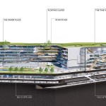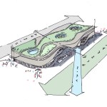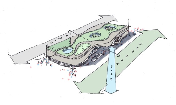 The initial scheme also promotes sustainable initiatives, featuring a water plaza which collects water, a solar energy production area on the roof which generates energy to cool the building during the summer and a green environment so that plants can introduce purified air.