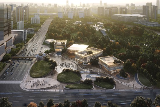 The new public space by COFCO is created to connect the adjacent mixed use development of Joy City with Baozixi Park in Wuhan, China. Acting as an ‘ecology line’, the design consists of a public promenade that subtly connects a string of five lightweight, elegant pavilions to one another with a series of substantial civic social spaces that are programmed to foster interaction and collaboration from the nearby metro station arrival to the adjacent Joy City. Together, the promenade, pavilions and open civic spaces weave the park into a unique place, creating a vibrant community asset, and providing a rich and modern identity for this new 21st-century district.