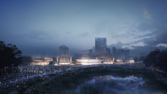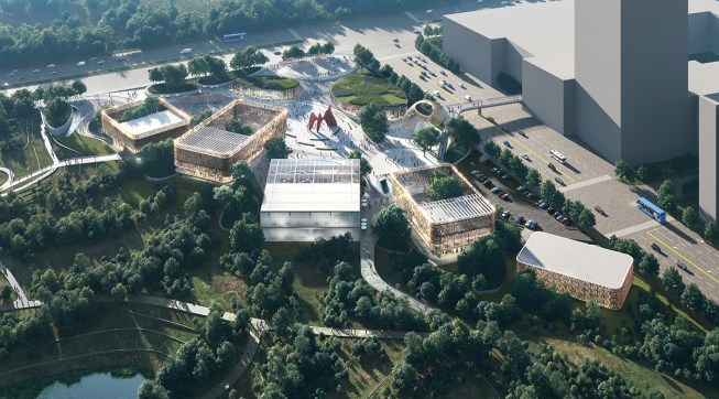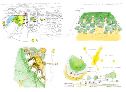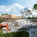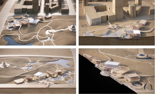 The clusters of pavilions and event spaces are structured around primary arrival and viewpoints which sit as the gateways into the park binding a substantial and varied public realm of entertainment spaces, lifestyle areas, and sports and event stages. This series of stages provide a prominent focal point for the community, as regards health, wellbeing and communal activity between the two environments, which all connect back to Joy City through both visually and physically.