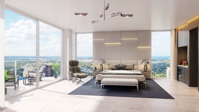 100 Las Olas is downtown Fort Lauderdale’s tallest tower and its first condominium project with a hotel component in a decade. The 499-foot, 46-level building features 113 luxury condominium residences, a full-service Hyatt Centric hotel that includes 238 guest rooms, a lobby-level restaurant and bar with indoor and outdoor seating, ballroom, meeting spaces, elevated pool and fitness center, plus an additional 8,500 square feet of select retail and dining space with outdoor seating on the first level. The Kolter Group assembled a brilliant design team to spearhead this project, including renowned SB Architects who created the vision for this iconic building architecture; nationally acclaimed Simeone Deary Design Group of Chicago who have masterfully crafted the vision for both the hotel and the residential common areas and Palm Beaches own, Bob Martin of The Decorators Unlimited, who has taken interior space planning and design to even greater heights with the introduction of four thoughtfully designed, innovative floor plans ranging from 1,501-2,964 square feet.