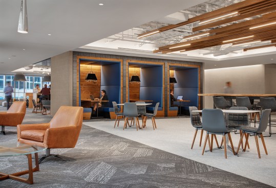 Located at what is commonly referred to as “the best location in downtown Chicago,” 111 South Wacker Drive is one of Chicago’s most prestigious Class-A office towers. With the modern office-user in mind, SCB designed 40,000 square feet of unparalleled interior amenity spaces on the 10th, 11th, and 29th floors, contributing to making the building one of the most desired workplaces in Chicago. Expansive views of downtown can be seen in all corners of the amenity spaces, allowing for abundant natural light and a connection to the energy of the surrounding city.